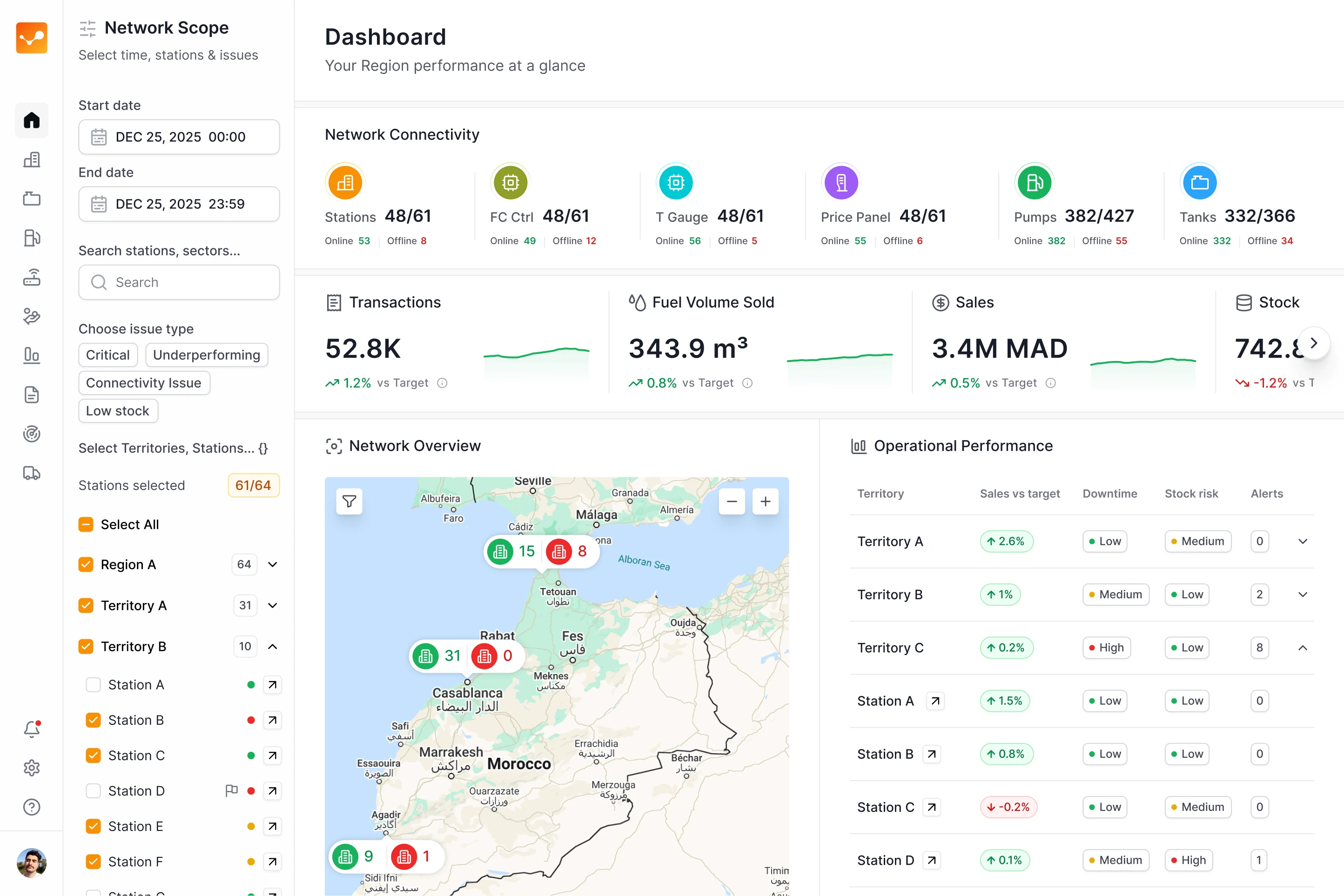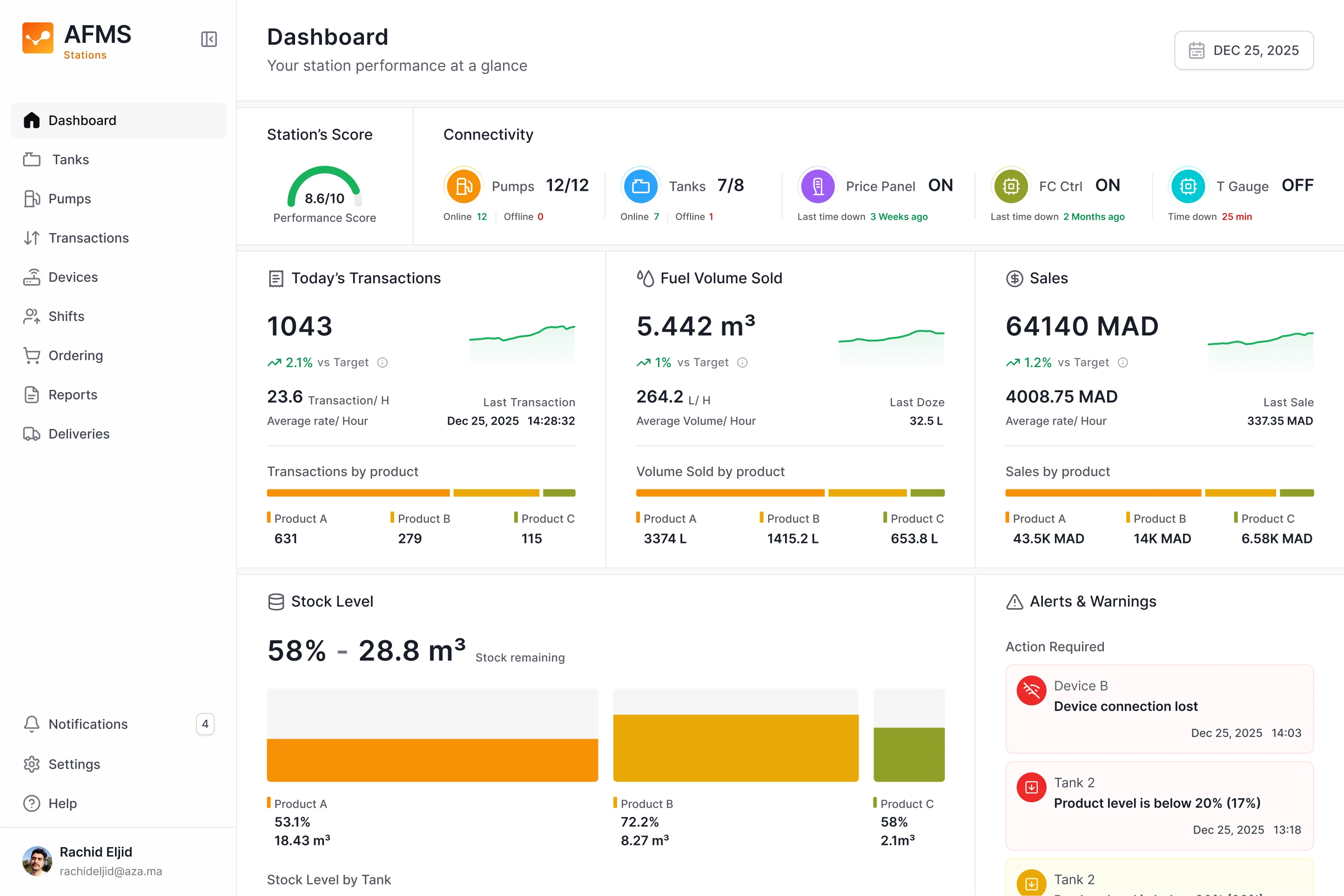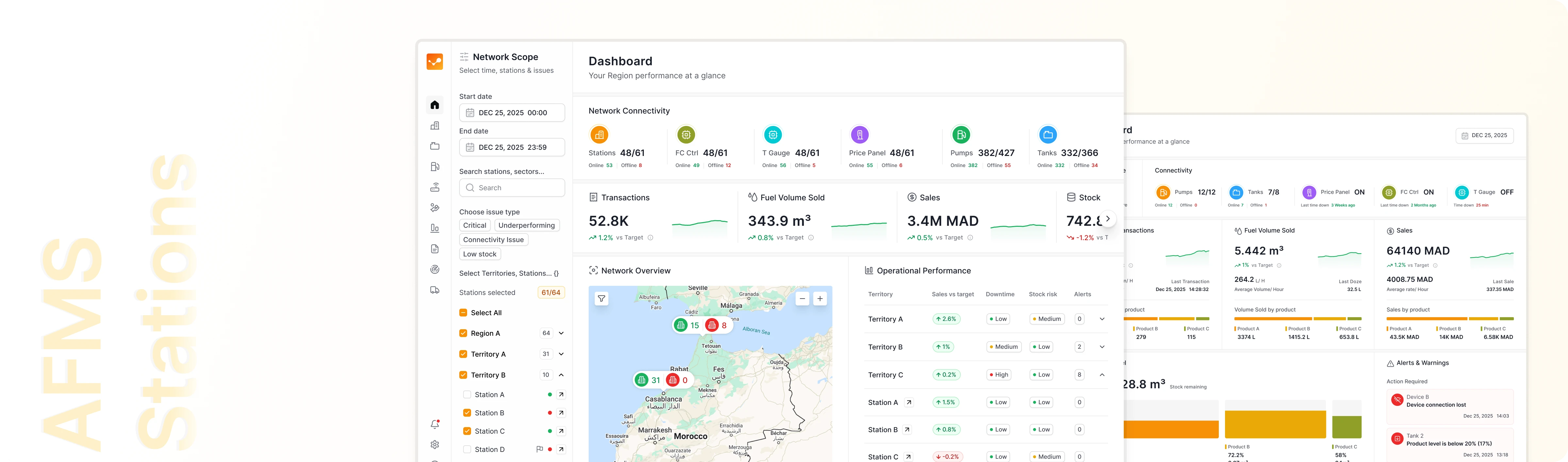 AFMS Stations is an operational SaaS platform used by enterprise energy companies to monitor and manage fuel station networks at scale.