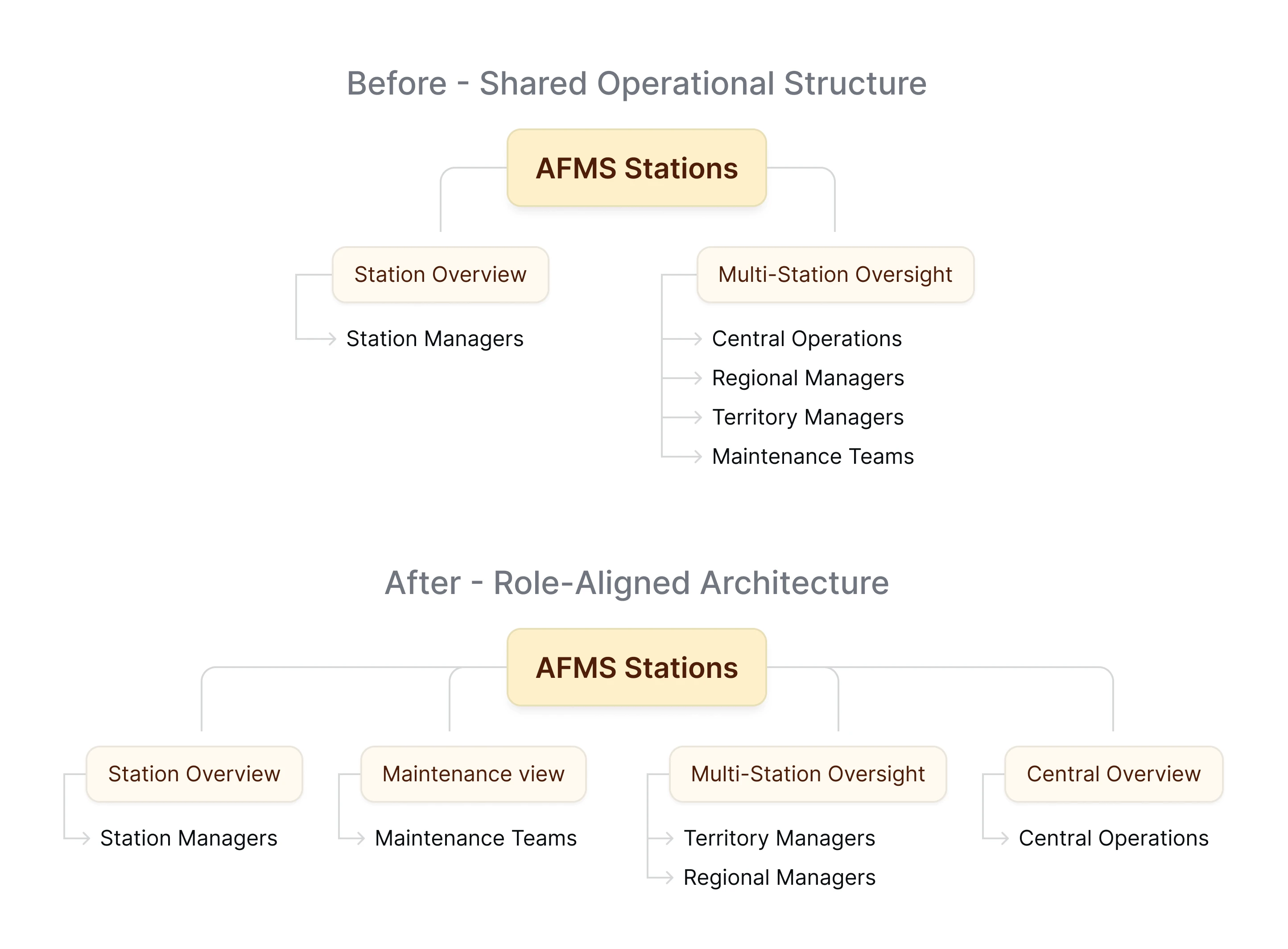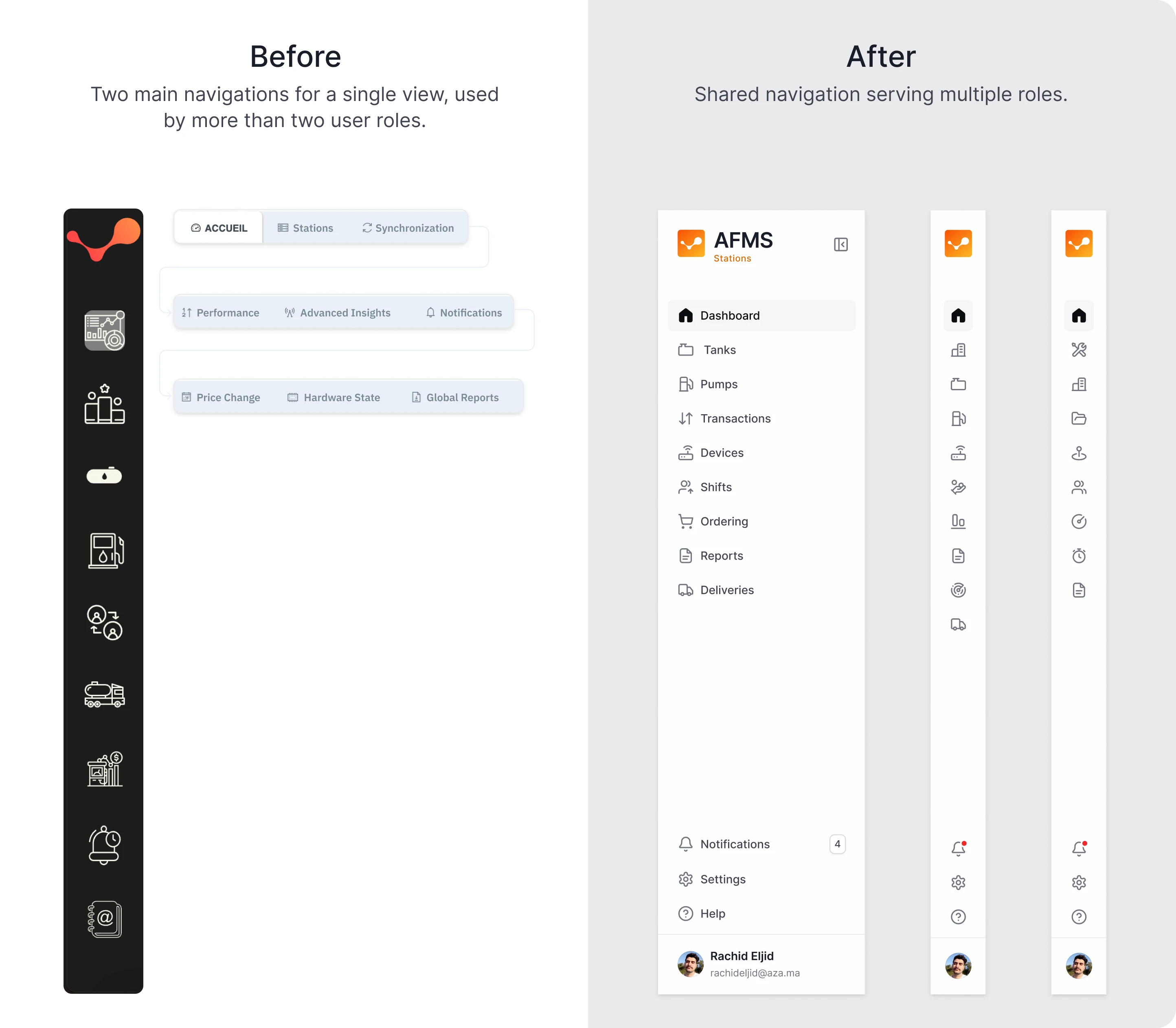 Navigation and hierarchy were redesigned to create a clearer mental model within each role environment.